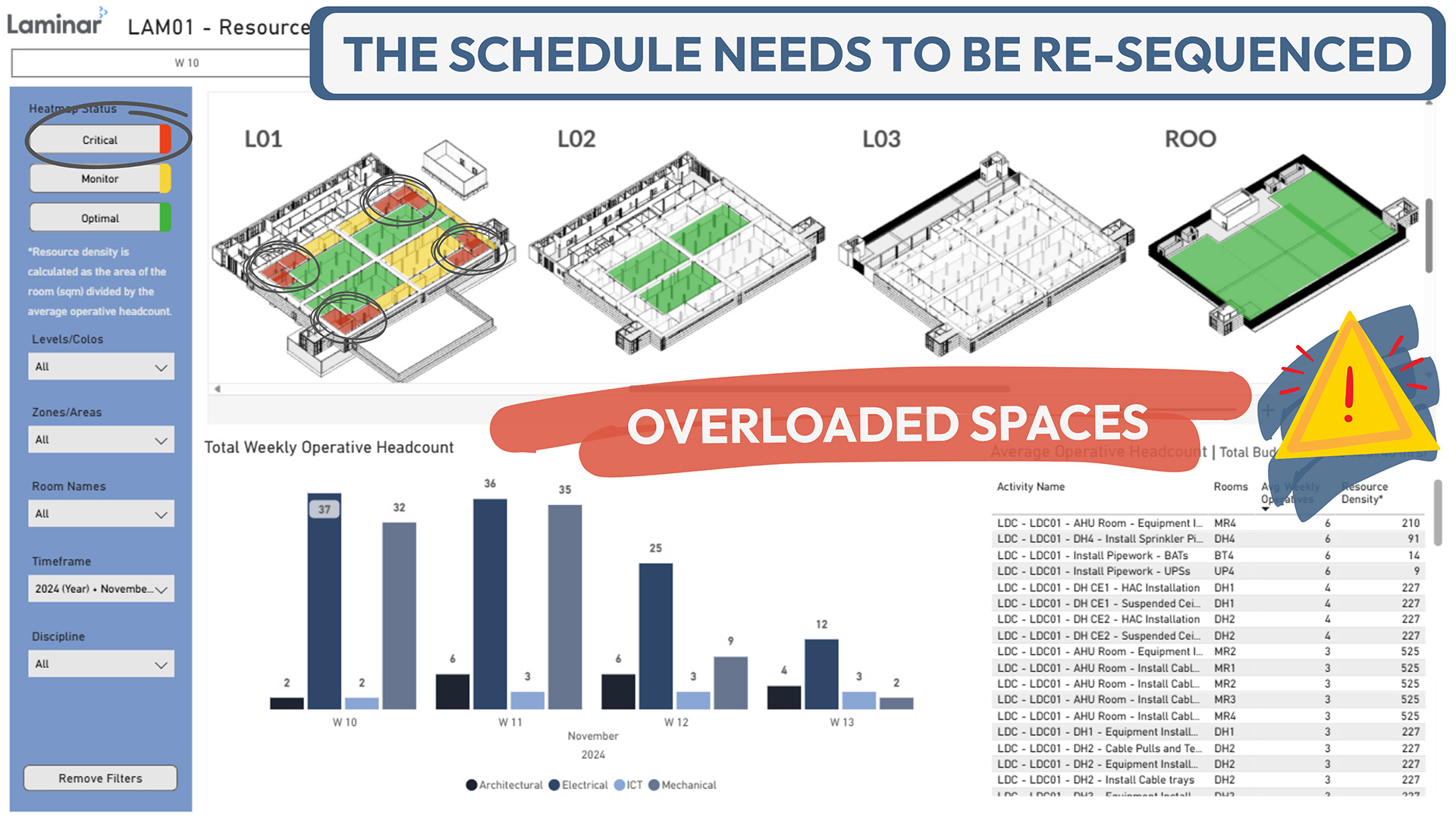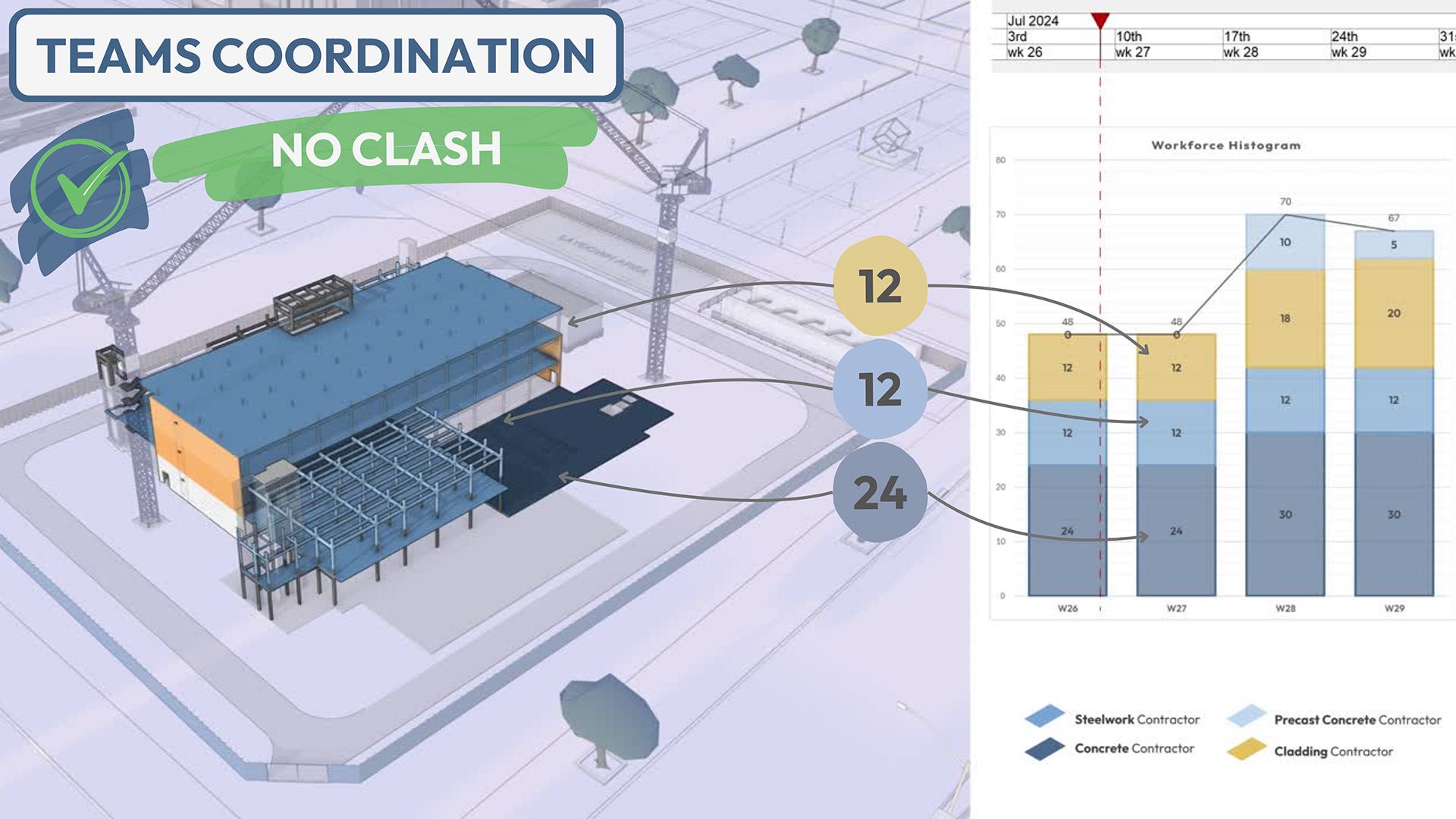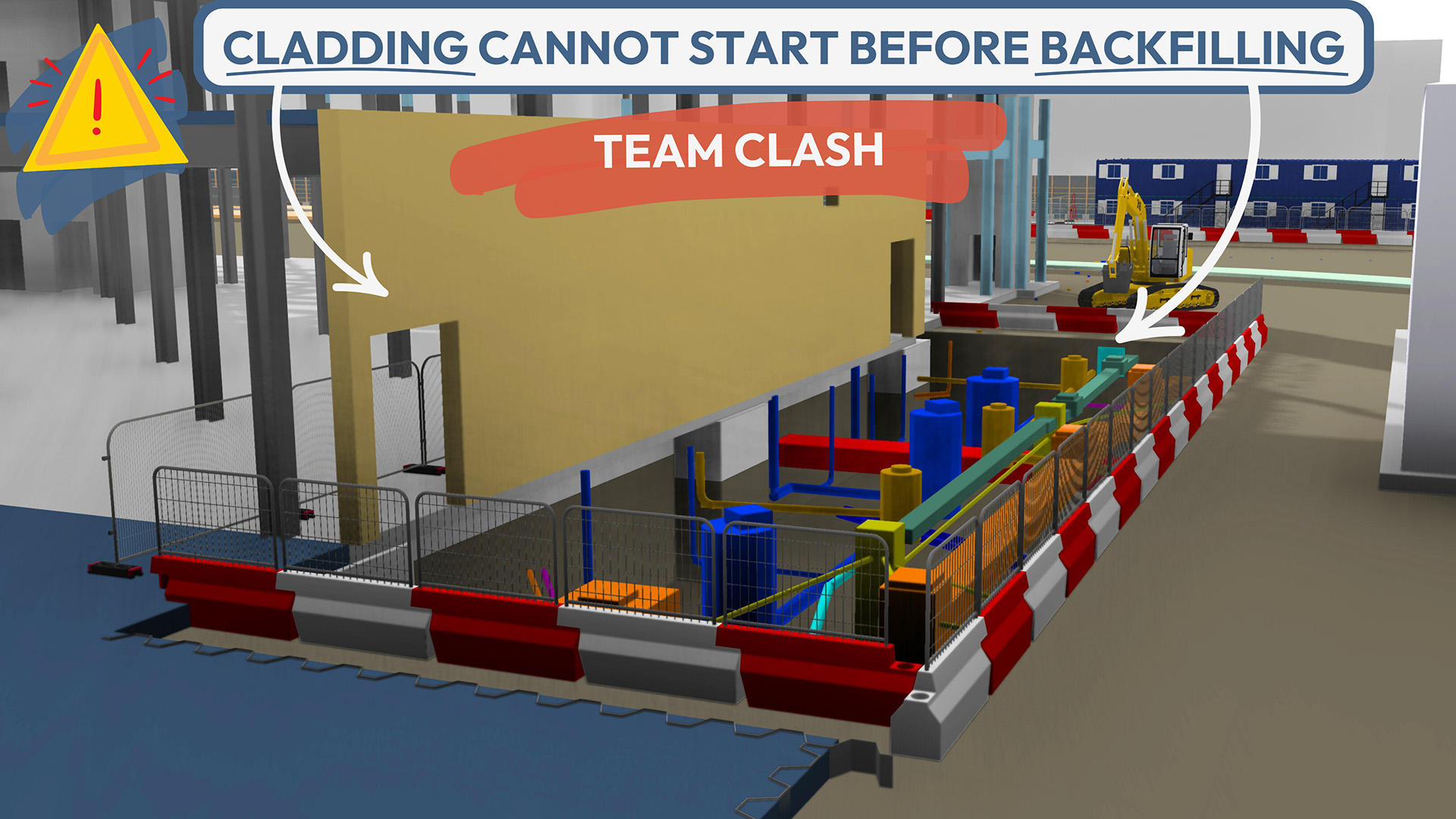 Run through the exact route that equipment and materials are scheduled to take and where they’ll get stuck so you can make sure that access is clear, they’ll fit on site, and things like temporary works happen in the right order, at the right time.